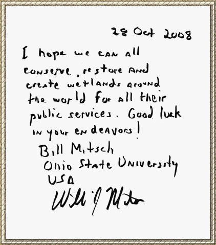 ![]() 美國俄亥俄州立大學自然資源和環境保護學教授William J. Mitsch的題詞 |