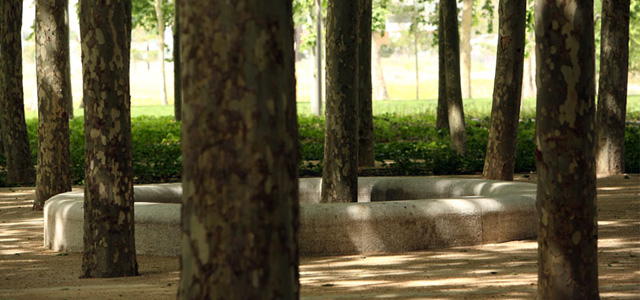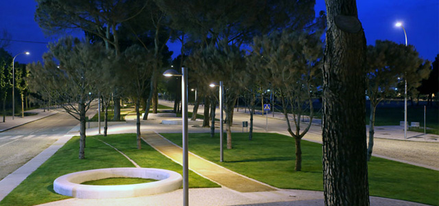 園區(qū)中心完全由一些現(xiàn)有和即將移植過(guò)來(lái)的樹(shù)木形成全長(zhǎng)為600米的綠地區(qū)。這些具有各自獨(dú)特外觀特點(diǎn)的大型樹(shù)木與巨大的圓形廣場(chǎng)及遍布其中的小路一起主導(dǎo)整個(gè)園區(qū)的景觀格局。