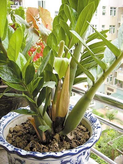 金錢樹有碩大的塊莖,其萌發眾多的芽和形成群多的小塊莖,復葉具2-3年以上壽命,并被新葉不斷更新。