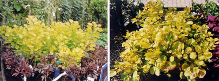常綠灌木,株高0.2-0.6米,枝下垂或平展。葉對生,葉長卵圓形,色金黃至黃綠,卵橢圓形或倒卵形,長2?6.5厘米,中部以上有粗齒。