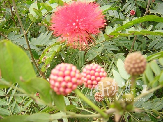 其花叢生為頭狀花序,花絲極多,深紅或粉紅色,宛若小繡球,鮮艷奪目,在綠葉叢中紅綠對比鮮明。形似一團團紅繡球掛在樹間,美麗照人,雅致熱烈,風格獨特,玲瓏可愛,十分惹眼。葉子也很特殊,宛如羽片,翠綠可愛;花期長,每年開花兩次,第一次為3月上旬至7月中旬,第二次10月中旬至翌年2月上旬。