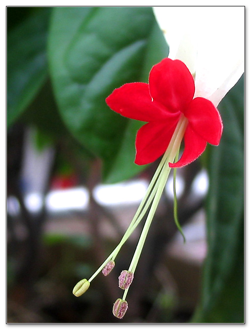 福氏?桐(C.foxii),葉深綠色,花鮮紅色。