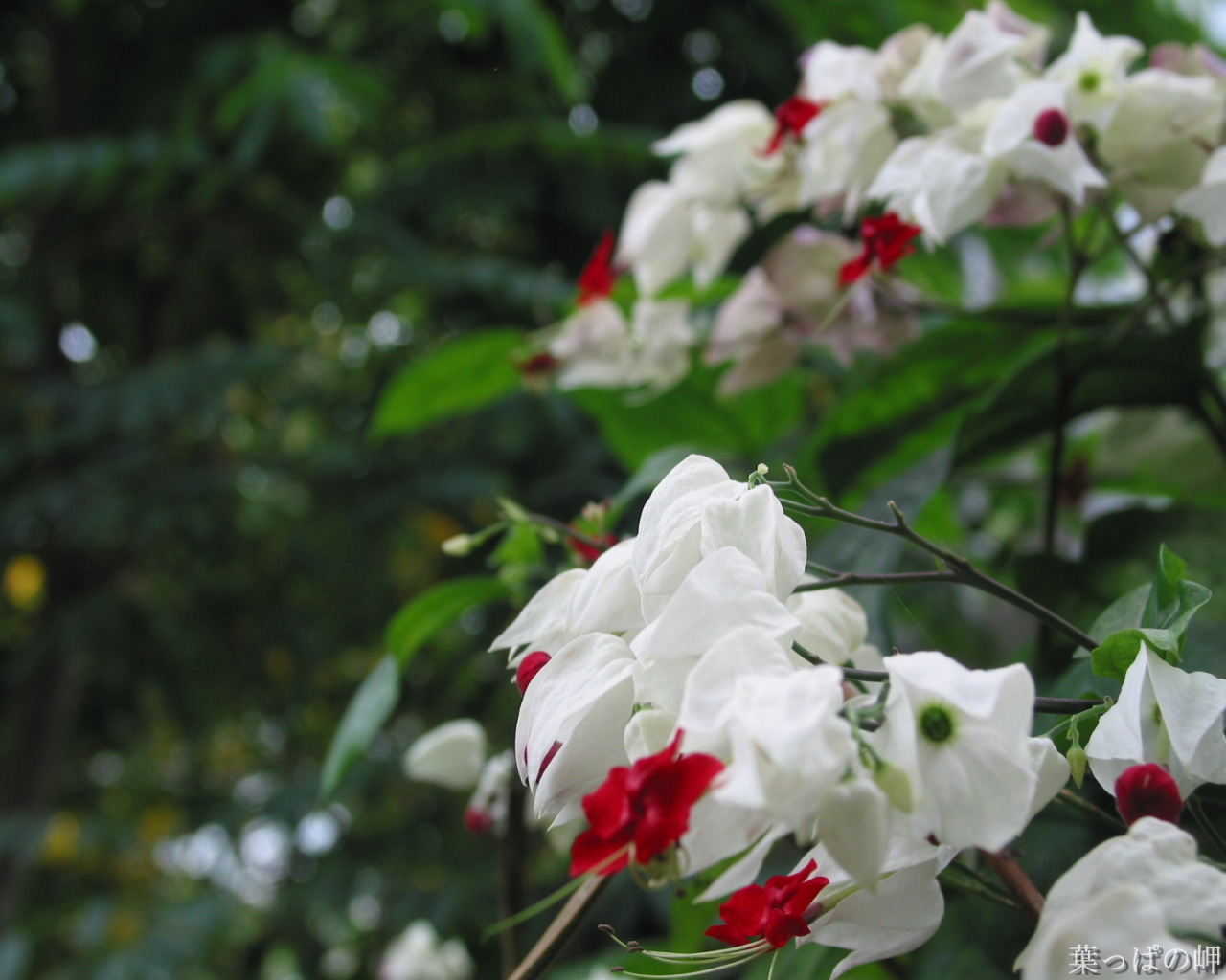沃氏?桐(C.wallichii),常綠灌木,葉深綠色,花序花色,萼片紅色,花白色。