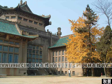將遠(yuǎn)處的自然景色借用過(guò)來(lái),這種手法在我國(guó)城市建設(shè)史尤其是園林藝術(shù)史中比比皆是,稱(chēng)為“借景”。將東湖及磨山的湖光山色“借入”校園景觀規(guī)劃中,是我們得天獨(dú)厚的地理優(yōu)勢(shì)。再現(xiàn)自然的手法主要有兩類(lèi):一是側(cè)重于還原自然,求其天造地設(shè)之效;另一種是工于構(gòu)造意境,以小見(jiàn)大,求其人文之趣。它們的共通點(diǎn)是崇尚自然,與自然緊密結(jié)合。武大的校園綠化還充分利用園林植物學(xué)植物的季相交替、形態(tài)特征、色彩變化等要素,結(jié)合武大蜿蜒起伏地勢(shì),創(chuàng)建出形態(tài)各異的景觀:春?雪白的櫻與蒼松翠柏和高大的銀杏相映成輝;夏?群芳爭(zhēng)艷、樹(shù)蔭蔽日;秋?滿園金桂飄香、紅楓盡染;冬?寒梅傲雪、松竹挺立。以植物造景命名的櫻園、桂園、楓園、梅園等教學(xué)區(qū),其詩(shī)情畫(huà)意的園林藝術(shù)與中西合壁的優(yōu)秀歷史建筑群融為一體,并將園林植物、建筑、人文雕塑、環(huán)境等學(xué)科融入校園環(huán)境建設(shè)之中,現(xiàn)在的武大櫻花更成為江城一景而蜚名中外。