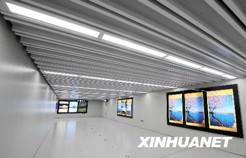 這是掛著北京主要旅游景點展示圖的地鐵奧運支線森林公園南門站旅客通道(7月29日攝)。 新華社記者鄒崢攝
