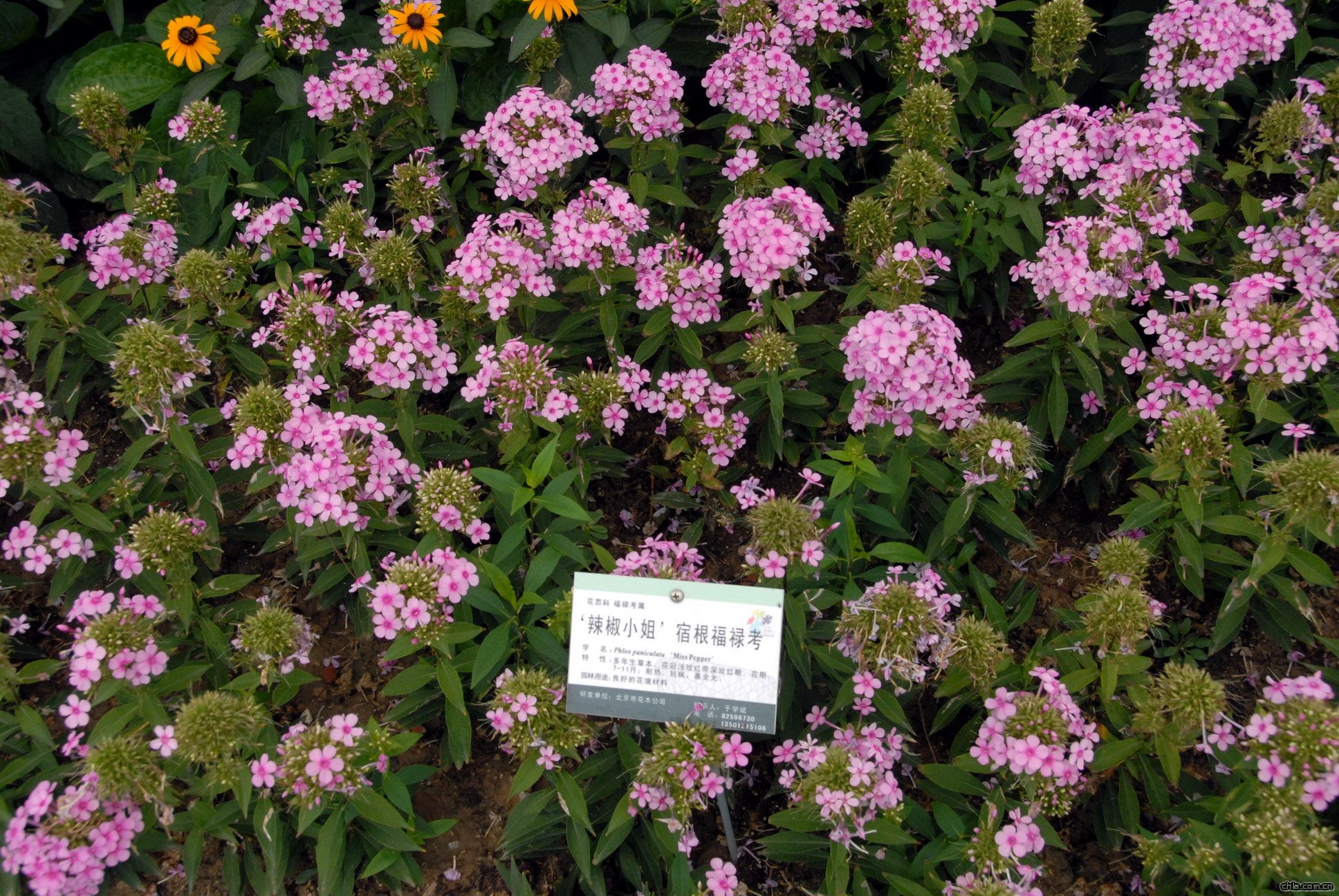 (多年生草本;花冠淺玫紅帶深玫紅眼;花期7-11月;耐熱、抗病、喜全光;為良好的花境材料)