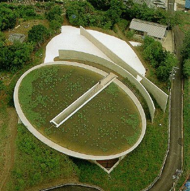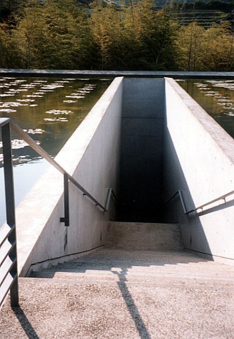 這是一座非常特別的建筑物。安藤忠雄將主體「寺」建立在一個很大很大的荷花池下,從外觀或許看不出那是什么,但沿著它的樓梯向下走,就會發現,別有洞天!這項作品也將安藤使建筑與自然結合的信念發揮得淋漓盡致。