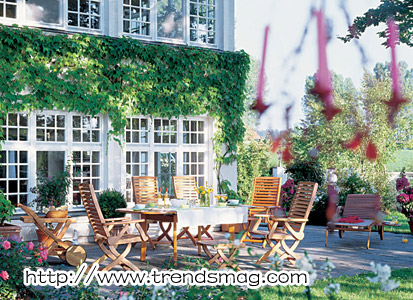 在眾多的庭院配置中,休閑桌椅對庭院起著畫龍點睛的作用。如何正確選擇它們對一個庭院建設成功與否是非常關鍵的。首先,如果可能的話,盡量選擇與庭院裝修相同材質的家具,因為相同材質搭配出的表情最和諧不過。此外,款式與色彩也最好與裝修風格一致,這樣才不至于產生不協調的觀感。挑選時有一個竅門可以嘗試一下,木質的庭院家具一般不會與整體效果有太大的沖突。