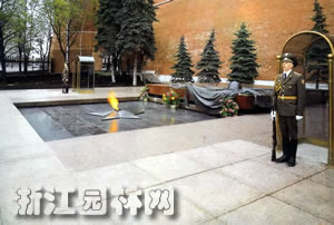 現在又修建了馬涅什地下商場和廣場,與花園渾然一體。噴泉,雕塑隨處可見。無名烈士墓則顯得莊嚴肅穆,修建于1967年勝利節前,是為了紀念二戰中犧牲的人們。墓碑上的長明火,自點燃一直燃燒到今天。墓碑上刻著:"你的名字無人知曉,你的功績永世長存。"外國領導人來,都要到這里來獻花。還有國家一號崗的換崗儀式。不錯,腿抬得很高。