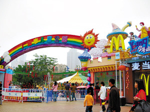 而矗立在公園出口旁邊的一座三層樓高玻璃建筑已經完全用作商業用途,一樓是肯德基餐廳,二樓是一家美發店。據公園的一位保安人員說,兒童公園剛開業時,這座玻璃建筑是屬于公園范圍的一部分,“剛開始是用作兒童畫廊、科普廊之類的?!?/P>