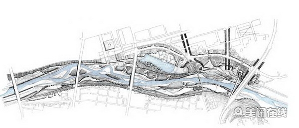 旭川是日本北海道島上第二大城市,Chu-Betsu河在旭川前方緩緩流過。和許多其他老工業區一樣,在Chu-Betsu河和旭川市間橫臥著一條鐵路。城市的南北網格布局與鐵路成垂直相交,每年漲潮時節,洪水便會對鐵路車廠形成包圍之勢,有時還會淹沒鐵路車廠甚至波及市區。Chu-Bets河風景秀麗,綿延的沙洲,蜿蜒遠去的河流,還有與水緊密相連的柳樹和棉白楊。日本工程公司建議因地制宜,在Chu-Betsu河岸筑混凝土石壩以防止洪水泛濫。