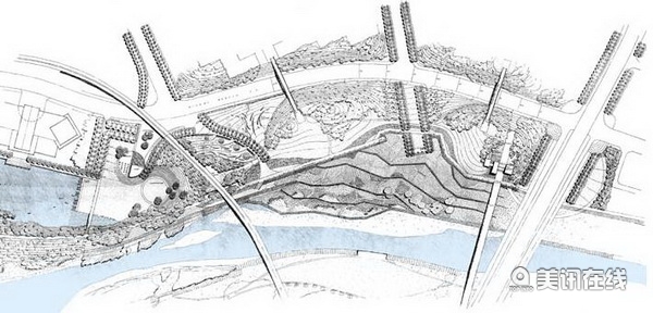 由于日本國有鐵路的私有化,城市抓住良機改造市中心廢棄的鐵路車廠。總體規劃由東京著名的規劃公司Gen Kato of Nihon Toshi Sogo Kenkyu-shu完成,PWP則負責2/3的市區公園規劃。往西是一個由堤壩和新種樹木圈護起來的礁湖,人們可以在這里舉行諸如劃船游泳之類的活動。往東,在旭川市與Chu-Betsu河之間是一道“生態梯田”。這個由工程公司最先提議的五米高的石壩如今變換成了一節一節一米高的“小梯田”,每一節的小梯田上都種植了保護河岸的水濱植物,位于最高處的是喜濕的肯塔基藍草,中間則是茂盛的莎草和蘆葦,再下來最底層便是柳樹叢了。