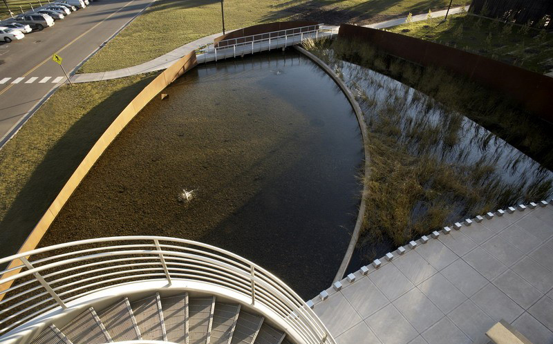 這個Swenson科學大樓在明尼蘇達州德盧斯大學內。其設計概念是“科學展示”。獨具特色的植物包圍著鋼筋大樓,這個大樓對于這所大學的師生來說,這個景觀設計也是一個戶外的實驗室。