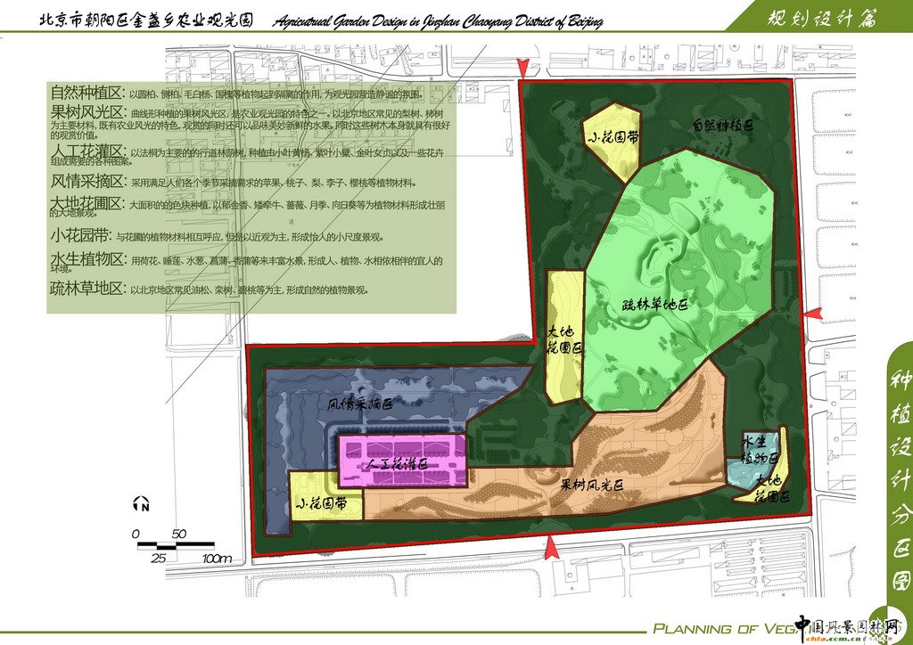 堅持可持續(xù)發(fā)展,合理布局植物空間以及景觀營造的原則,創(chuàng)造出宜人的園林意境,體現(xiàn)出大地上豐富的農(nóng)業(yè)風(fēng)光.