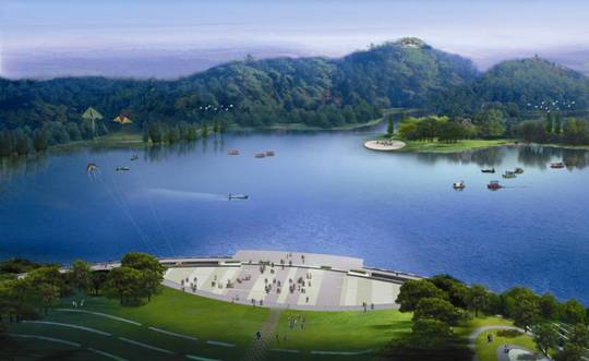 奧林匹克公園龍形水系的龍頭部位即為森林公園的主湖景區(qū)。此景區(qū)位于森林公園南半部居中的位置,與主山景區(qū)共同構(gòu)筑森林公園中最為壯美的自然山水景觀畫卷。規(guī)劃以中國傳統(tǒng)園林文化中對仙境的追求模式為藍(lán)本,營造蓬瀛仙山靈島的氛圍。