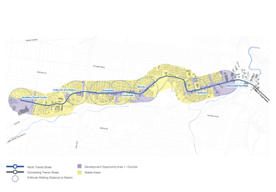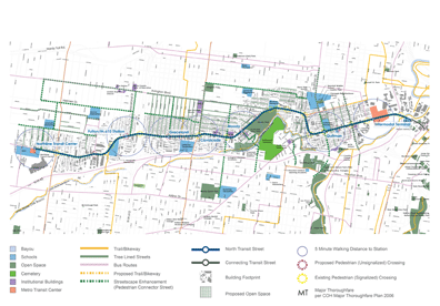休斯頓的城市廊道規劃研究是一項指導土地使用的策略,它也指導著未來輕軌將要穿過的六個廊道的發展決策。此項策略定義了社區建筑物的機遇、以公共交通為向導的發展以及城市空間的創造。這個項目獲獎的價值在于它提出公共區域是充滿生機的城市的關鍵所在,而這個提議打破了休斯頓的模式,同時此項目提供了實現其目標的全面的策略。