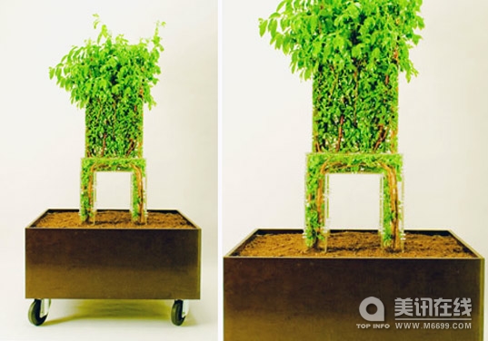 這把椅子是由瑞士的設計師Michel Bussien設計,它看起來更像是一件藝術品。俄國的藤本植物纏繞著四條用柳枝制作的椅腿,隨著藤本植物的生長,穿過椅子結構的中空部分,最后到達椅背。