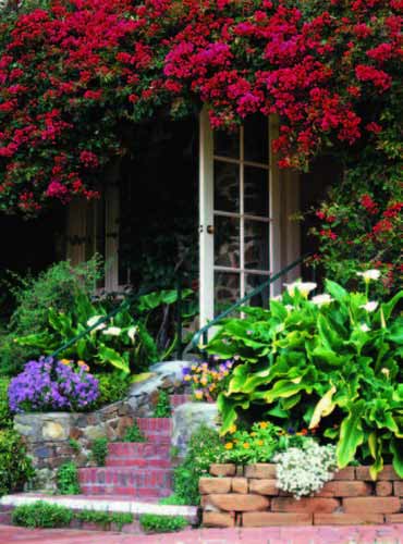 設計師建議大家多利用蔓生植物,如這種盛開的三角梅,1它可以柔化建筑邊緣,將屋頂變成一道美景。而蔥綠的常春藤能將墻面裝飾得富有生機,充滿自然氣息。