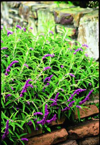 耐旱植物,經受過沙漠、山石或地中海氣候的考驗,即使在干旱的地方也能繁茂地生長。1這叢茂盛的墨西哥鼠尾草很美,含有灰色調的葉片上覆蓋了一層起保護作用的細細的絨毛,能反射陽光來保持潮濕。另外,西班牙熏衣草、蝴蝶樹、景天屬植物都是比較耐旱的選擇。
