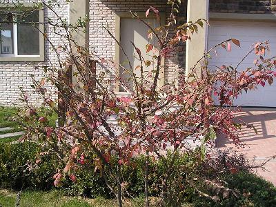衛矛科,灌木或小喬木,原產地株高可達8m,園林栽植一般株高2-3m。葉橢圓形,具鋸齒,聚傘花序,花小,果粉紅色,假種皮橘紅色。秋葉鮮紅色,適宜于綠地及公園,是非常好的觀秋葉樹種。