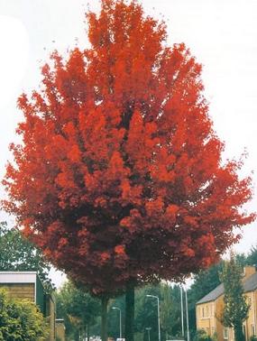 槭樹科,槭樹屬。為落葉觀賞類高大喬木,樹高可達30m,冠幅達10余米,直立向上。4月末至5月初開紅花,先花后葉,夏季葉片亮綠,秋季變深紅或橙紅色。有較強的抗性,耐澇、耐旱、耐寒能力和萌蘗性都很強。