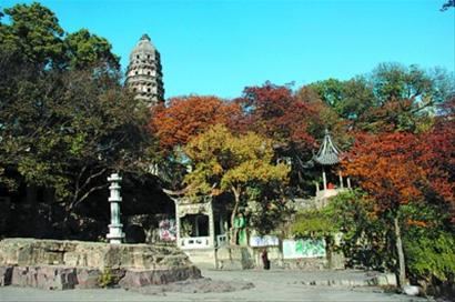 位于虎丘西麓的萬景山莊,匯集蘇派盆景之精華,借山光塔影,恬美如畫;虎丘后山植被茂密,群鳥繞塔盤旋,蔚為壯觀。
