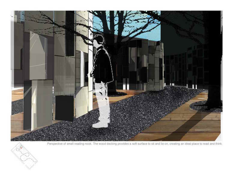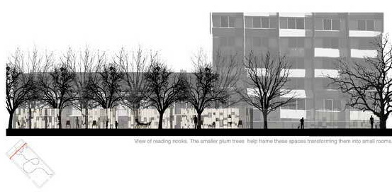 讀書角利用樹型較小的薔薇科樹種進行場地分隔