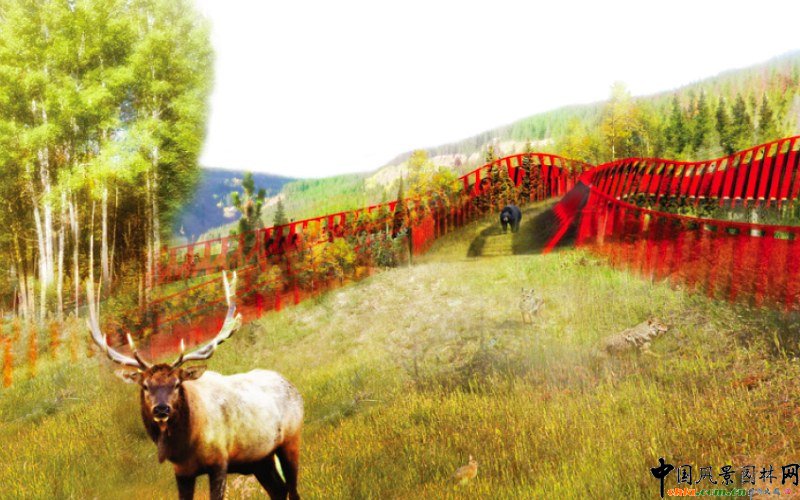 中國風景園林網訊 國際野生動物走廊設計大賽要求設計師們將需求和美觀融合,提高人們和野生動物的安全性。比賽還注重于實施方案中材料的運用,期望能夠降低在基礎設施上的花費。