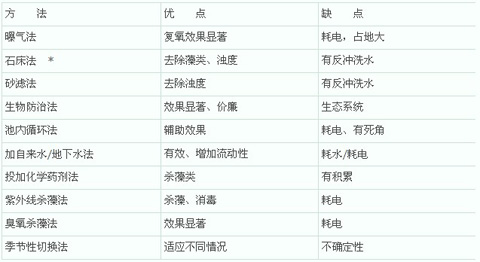 對景觀水體通常采用的處理方法的優缺點比較見表1。