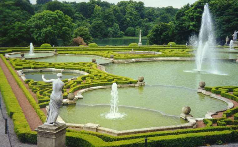 以布倫海姆宮為軸心的龐大宮殿式建筑群是丘吉爾莊園的中心。這里珍藏著諸多油畫、雕塑、精美瓷器和大量珍貴的實物和照片,還有部分丘吉爾晚年的畫作。宮殿外有著名意大利雕塑家Bernini (貝尼尼, 1598-1680) 設(shè)計的水神噴泉,Sir John Vanbrugh (范布勒爵士, 1664-1726,英國建筑大師) 親自設(shè)計的巨大幾何形花壇,還有天然湖泊,草場和瀑布。整個莊園雖然加入很多人工景色,卻無處不透漏著田園般的自然風光,足見設(shè)計者的匠心獨具。