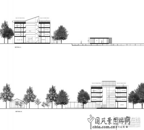 旅館設(shè)計(jì)在場(chǎng)地的南面,餐廳在北面。