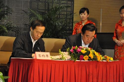右為石家莊副市長王大虎在簽署園林綠化目標責任狀