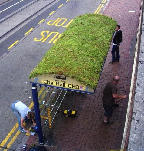 車站的頂棚是做屋頂綠化的理想載體。在英國南約克郡,為了響應當地推廣屋頂綠化的政策,設菲爾德地基公司以及設菲爾德地基公司屋頂綠化論壇率先相應了這項政策:在當地的公汽站進行綠化。更有趣的是,他們將此次活動定義為DIY行動,任何市民都可以來參與這項活動,為城市的綠化建設添一份力。