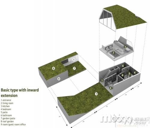 生命景觀是StudioMarcoVermeulen系列設(shè)計(jì)的第一版,設(shè)計(jì)植根于傳統(tǒng)的荷蘭住宅,每公頃場(chǎng)地中有36座住宅,住宅之間采用背靠背的朝向。新的朝向設(shè)計(jì)能讓所有的住宅都能享受到太陽(yáng)直射光線。