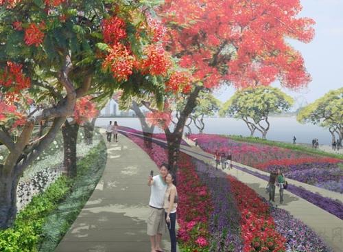 海港花園占地面積101公頃,由三個富有特色的海濱園區組成:長條形花園,水景花園和美食花園。東部港灣長條形花園,很好地裝飾了碼頭區域休閑散步的狹長通道,并且延伸至海濱地區;水景花園里有一片片梯田,一直通向海濱,讓游覽者與海岸線,與通向天際的奇特景觀親密接觸;美食花園讓你可以隨心所以的選擇豐富的晚餐,花園的水上運動設備和觀眾臺,可以進行多種水上運動,并且可以舉行像皮劃艇、雙槳劃船和龍舟比賽這樣的娛樂比賽活動。