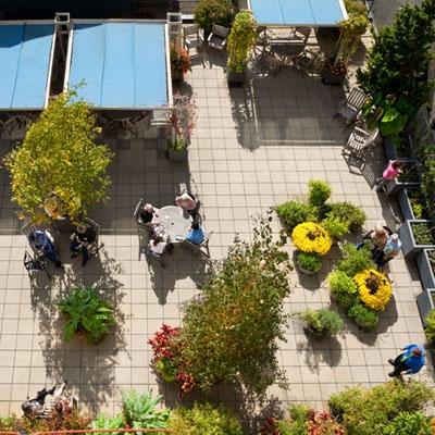 這個屋頂康復園圍繞著一系列花房設計,大小不一,主題不同,適于進行器械活動、非正式交談、靜思冥想或者安靜獨居。根據(jù)個人對舒適度的需求可以調節(jié)光照,從全陰影、半陰半陽過度到全陽光。強調操作簡單,鼓勵居民采取自助游園。為了方便使用,花盆大小不一,高低不同,有些特殊地帶進行地面噴漆,吸引高層居民的興趣,指示康復園的方位。同時,還將園藝療法與護理中心的檢查結合起來,促進患者更好康復。