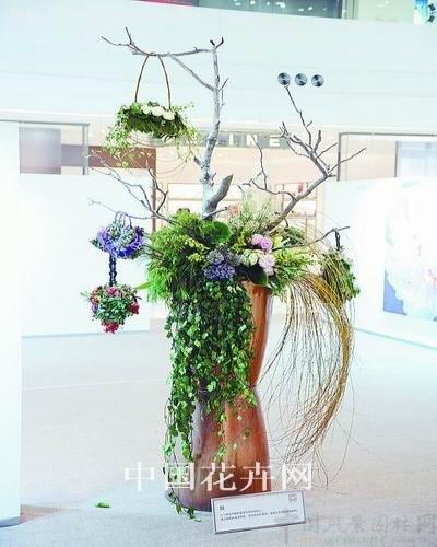 花藝展的十幾個(gè)作品的花材全部由荷蘭進(jìn)口,僅成本就達(dá)數(shù)萬元。樓梯口處幾米高、以滿天星點(diǎn)綴黃色馬蹄蓮的巨龍?jiān)煨皖H有氣勢,表達(dá)出盛世騰飛的主題;展示臺(tái)上,以枯藤、綠色繡球以及鐵線蕨等創(chuàng)作的一組自然風(fēng)情作品,散發(fā)出原野般清新的氣息;以藤編酒瓶狀造型三個(gè)一組創(chuàng)作的大型落地作品,簡單地點(diǎn)綴以蘭花,意在表達(dá)人與人之間和諧親切的情感。此外,各具特色的新娘捧花作品點(diǎn)綴其間,多姿多彩。花藝師舉辦了小型花藝表演。花藝展配合畫展,在溫馨的燈光、小提琴醉人的伴奏中,讓所有觀眾重新認(rèn)識(shí)了花的魅力。商場不少高端品牌的負(fù)責(zé)人在現(xiàn)場討論著哪些作品可以用在什么樣的活動(dòng)中。