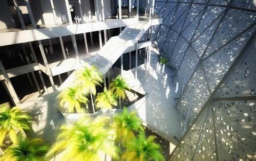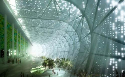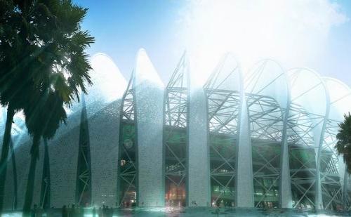 直射陽光被不同方向的葉片方遮擋、消除了。建筑師在體育場和開放的“封套”之間的縫隙空間中設計一座花園,為參觀者提供了一個熱緩沖區和室內綠洲。