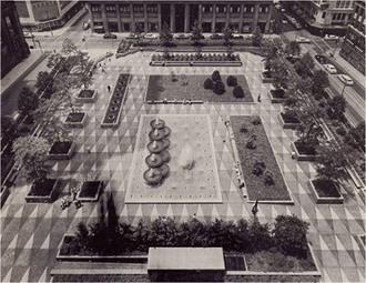 中國風景園林網訊: 梅隆廣場是美國第一個建在停車庫車場上的現代花園廣場,也是最早的屋頂綠化的實例之一。這個廣場建在車庫停車場上方,是杰出的景觀設計公司Simonds & Simonds和建筑師Mitchell、Ritchey設計建造的。