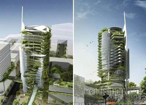 人們希望這幢長滿綠色植物的塔樓能給當地擁擠的都市環境帶來一絲宜人的大自然的感覺。