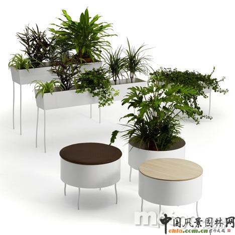 在2011年斯德哥爾摩國際家具展上,ClaessonKoivistoRune、Front、Jean-MarieMassaud和LucaNichetto展出了一系列室內(nèi)綠色設(shè)計(jì),這些設(shè)計(jì)能將植物帶入到室內(nèi)。這個(gè)綠色系列名為“綠洲”,每一款都用可種植植物的地方,包括桌子、座位和花盆架。