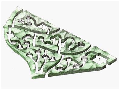 因此,他提出將休息區與高速公路明確分開,形成一種完全不同的景觀,并提供舒適的休息條件,允許孩子自由玩耍,不必受看管或冒著被車撞的危險。尼姆-卡薩格路段是拉索斯在法國南部設計的第一個休息區。
