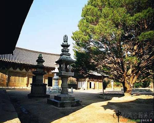 此園建于公元528年的佛國(guó)寺是其中年代最為久遠(yuǎn),保護(hù)也較為完整的一座,已被列入世界文化遺產(chǎn)名錄。同我國(guó)大多數(shù)佛寺一樣,佛國(guó)寺選擇建在風(fēng)景綺麗,幽靜深寂的山林之中。進(jìn)入山門(mén)后,依山路蜿蜒而上,經(jīng)十字脊屋頂?shù)溺姌牵^續(xù)拾級(jí)而上,約半個(gè)多小時(shí)始到寺內(nèi)。途中林木叢生,道路幾經(jīng)曲折,有力地烘托出佛寺圣地的神秘肅穆的氛圍。佛寺建筑布局為院落式,因地制宜地隨地勢(shì)起伏而高低錯(cuò)落。佛國(guó)寺于1592年毀于戰(zhàn)火,后經(jīng)多次修補(bǔ)、復(fù)原,只有大雄寶殿、紫霞門(mén)等處的石造部分是古新羅遺物,雖歷經(jīng)1500年風(fēng)雨仍屹然挺立,顯示了朝鮮民族高超的石造藝術(shù),彌足珍貴。