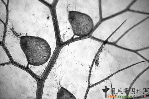 P.watanukii水下部分在解剖鏡下的形態(tài),可以看到分枝中的維管束,以及囊狀體的著生方式(Fukuzumi et al., unpublished data. Figure 2).
