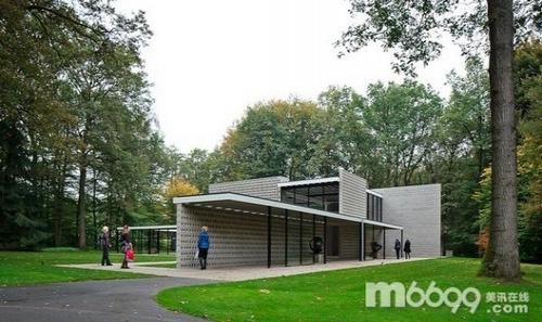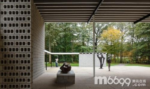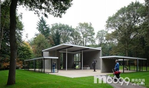 這是荷蘭著名設(shè)計(jì)師里特維爾德早在1955年第三屆國際雕塑展上展出的一系列小雕塑。這個(gè)展出之后,雕塑就被撤除了,但人們依舊迷戀里特維爾德的設(shè)計(jì)所表達(dá)的簡單之美,于是在1965年,庫勒慕勒博物館在其雕塑花園里為里特維爾德的設(shè)計(jì)建立了一個(gè)永恒的歸宿,重命名為“里特維爾德之亭”。自此以后,對(duì)里特維爾德之亭的維護(hù)與整修就成了一個(gè)持續(xù)的話題;但這個(gè)精致的藝術(shù)品終究熬不過時(shí)間的摧殘,我們現(xiàn)在看見的是2010年剛剛翻新重建的,它竭盡全力地保留里特維爾德的精髓,盡力恢復(fù)1965年老里特維爾德之亭的風(fēng)范。