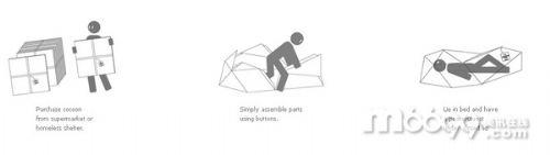 韓國產品設計師及皇家藝術學院學生hwangkim設計了一種由硬紙板制作的可折疊便攜式城市庇護所,分發給那些無家可歸者。這個名叫“繭”的設計是由可折疊的單層硬紙板和塑料紐扣制作的,在不用的時候可以折疊成一張方形紙板,便于攜帶。