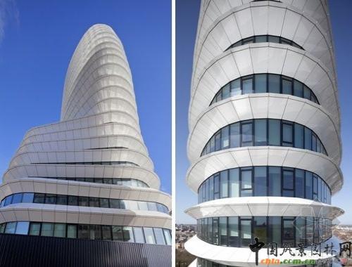 這是由UNStudio設(shè)計(jì)的位于荷蘭格羅寧根的國家稅務(wù)局和學(xué)生貸款辦公室,這個項(xiàng)目是歐洲政府大樓中最可持續(xù)的建筑之一。它是后標(biāo)志時代對高層建筑的綠色探索,項(xiàng)目呈現(xiàn)出92米的高大體量,建筑表面柔軟起伏,有著彎曲的線條,生動點(diǎn)綴格羅寧根的天際線。這個不對稱的空氣動力學(xué)構(gòu)造身處小巧古老的林地內(nèi),這里分布著一些稀有的受保護(hù)的植物種類。除了建造,項(xiàng)目還包括管理、建筑維護(hù)、設(shè)施維護(hù)及相關(guān)服務(wù),為期二十年。建筑周邊被大型的公共城市花園,及具有商業(yè)功能的多功能亭子包圍。