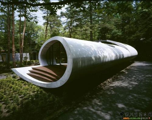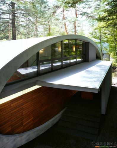 由建筑師kotaroide設(shè)計的“貝殼館”(ShellHouse),是一個建在輕井澤森林中的類似“殼”結(jié)構(gòu)的建筑。項目坐落于日本長野縣。項目定位為一座度假別墅,同時要求具有抵擋當(dāng)?shù)叵募境睗瘢竞涞墓δ堋閷崿F(xiàn)這一目標(biāo),ide沒有選擇當(dāng)?shù)匾赘嗳醯膫鹘y(tǒng)木結(jié)構(gòu),取而代之的是利用增強型混凝土去建造了兩個橢圓形截面的殼形結(jié)構(gòu)。