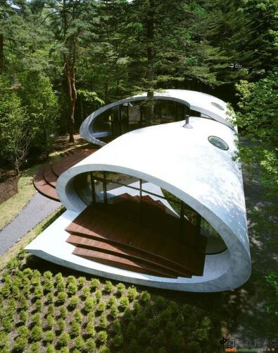 別墅簡潔的審美取向使它很好的融合到傳統(tǒng)的日本景觀中,在未來主義風(fēng)格的建筑與其所處的自然環(huán)境之間達到了完美平衡。整個“貝殼館”(ShellHouse)工程耗時18個月。