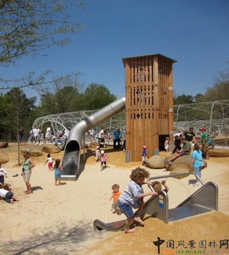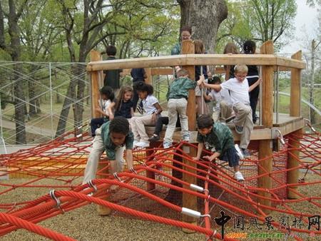 中國風景園林網訊:林地探索游樂園由謝爾比農場公園保護計劃設計公司和James Corner牧場運營公司設計建造。為了打造21世紀新型游樂園景觀,兩個公司直接轉向游樂專家——當地兒童。森林探索游樂園前身是一個20年前建的游樂場,四周被林地包圍,林地中有郁郁蔥蔥的女貞樹。游樂園的設計充分利用了這里的地理位置、林地修復工程和大量新栽植的當地樹木,使游戲空間與周圍景物能完美地融合在一起。